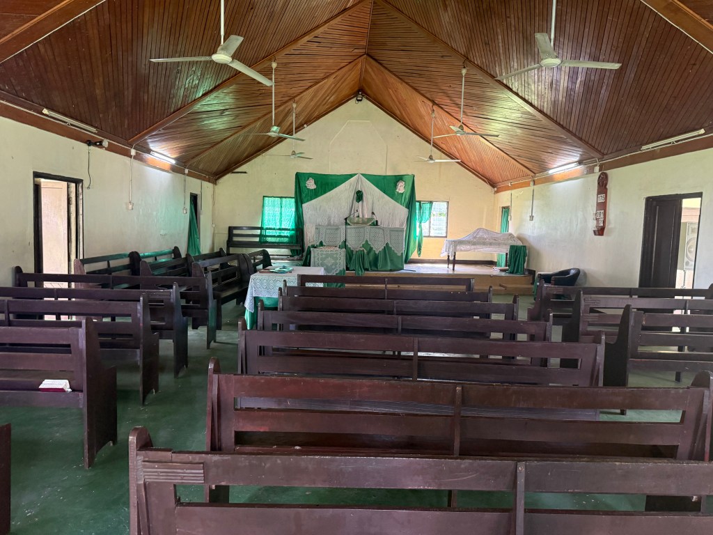 Jamie and I were the only ones interested in this exploration form our hotel. The boat ride to the other side of the island was about 10 minutes. Our guide was a local to the village, lets call him Samu. He walked us through the common areas, the church, the school, all the while telling us stories and local customs.